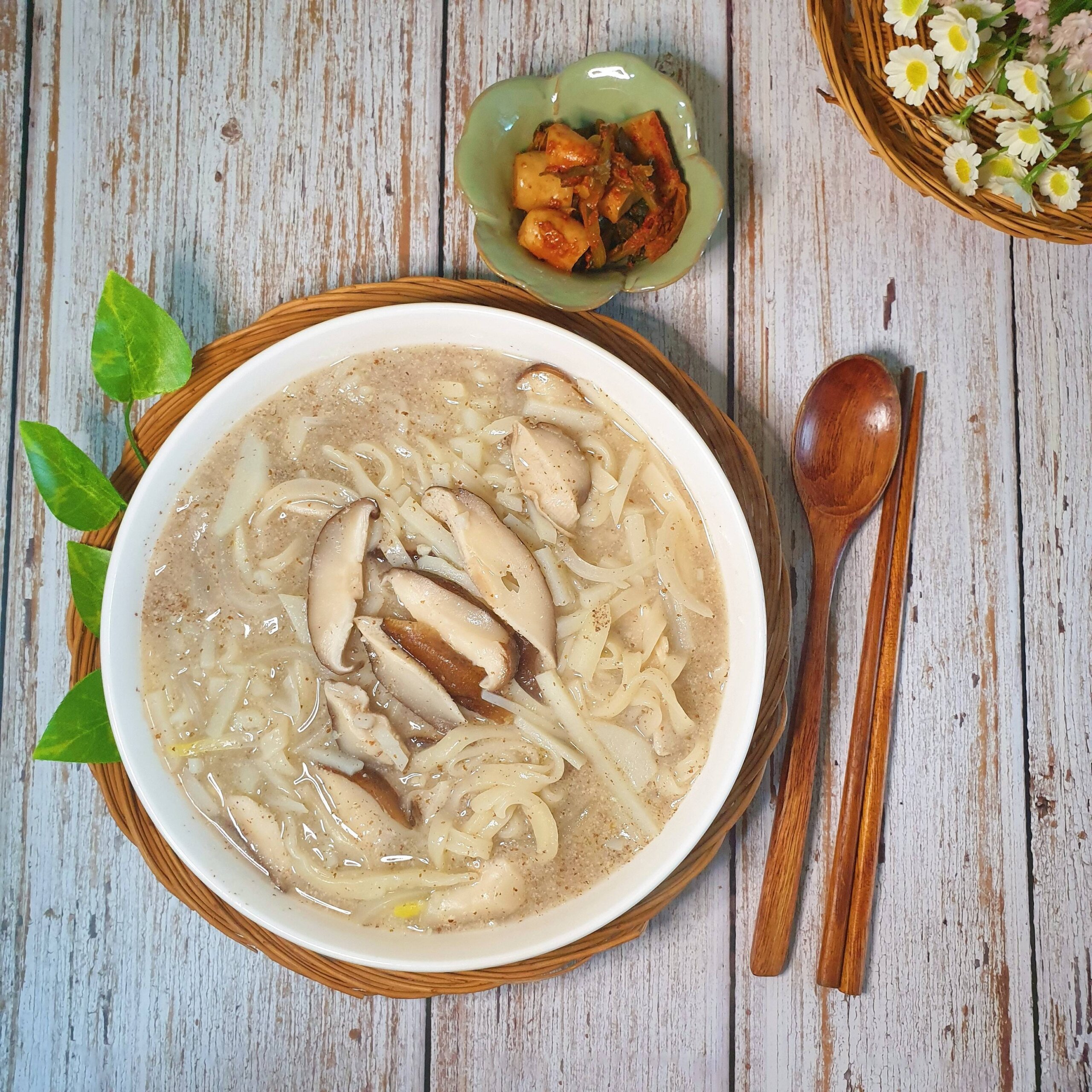 Nikmati sensasi gurih yang meledak di mulut! Terinspirasi dari resep Baek Jong-won, Kalguksu ini dibuat dengan kuah kaldu yang kaya rasa, dipadukan dengan aroma harum wijen yang menggugah selera. Cocok untuk hidangan yang memuaskan.
