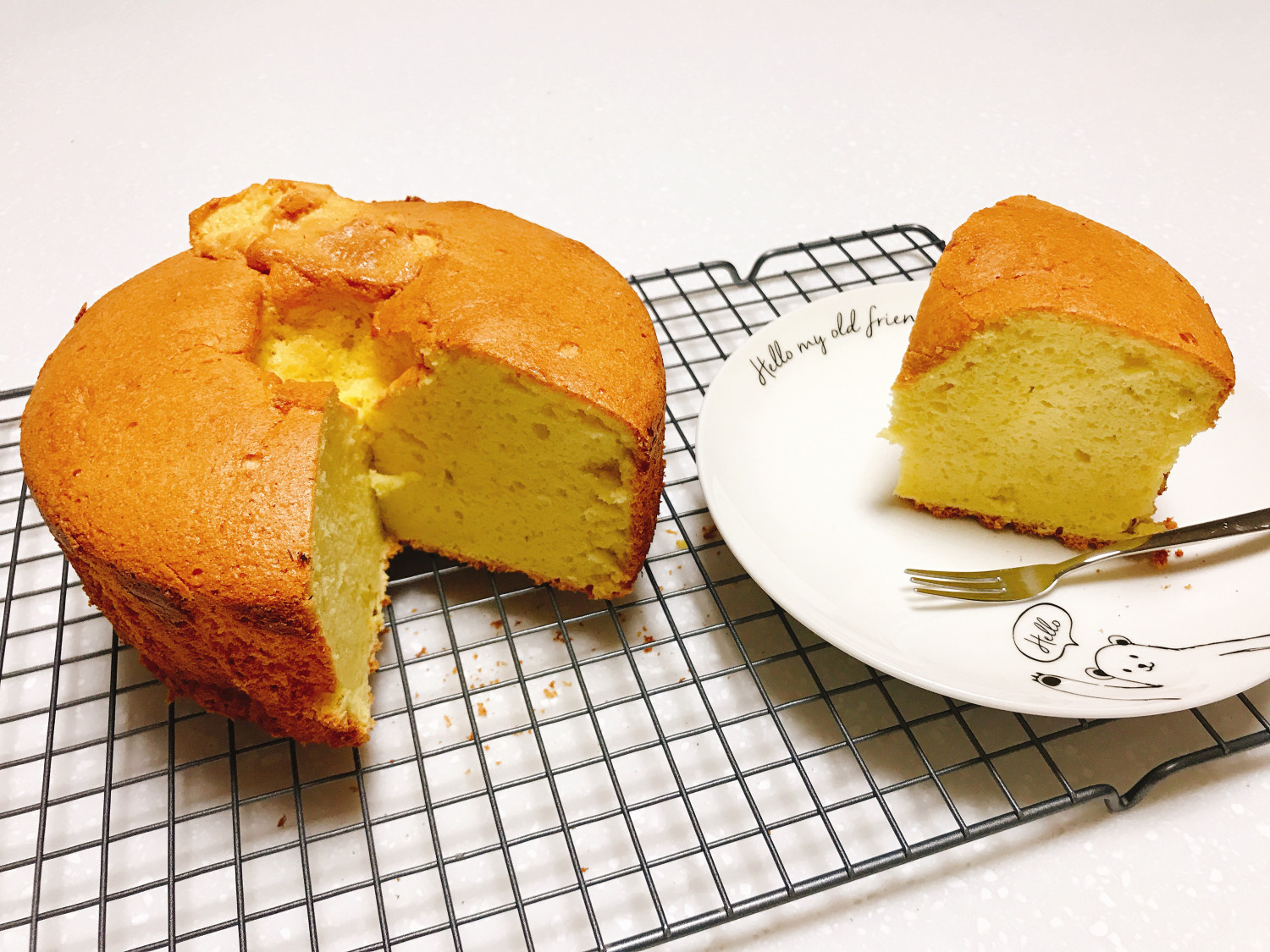 Voila! Meskipun tidak dipanggang murni di panci nasi, versi oven ini memiliki tampilan menawan yang sama seperti Kastella panci nasi tradisional! Saat pertama kali mengeluarkannya dari oven, saya sangat bersemangat sehingga saya membalikkannya terlalu cepat, menyebabkan bagian tengahnya sedikit tenggelam. Namun, secara mengejutkan terlihat lebih lezat seperti ini! (Bagian tengah tenggelam karena adonan mentah tumpah keluar.)