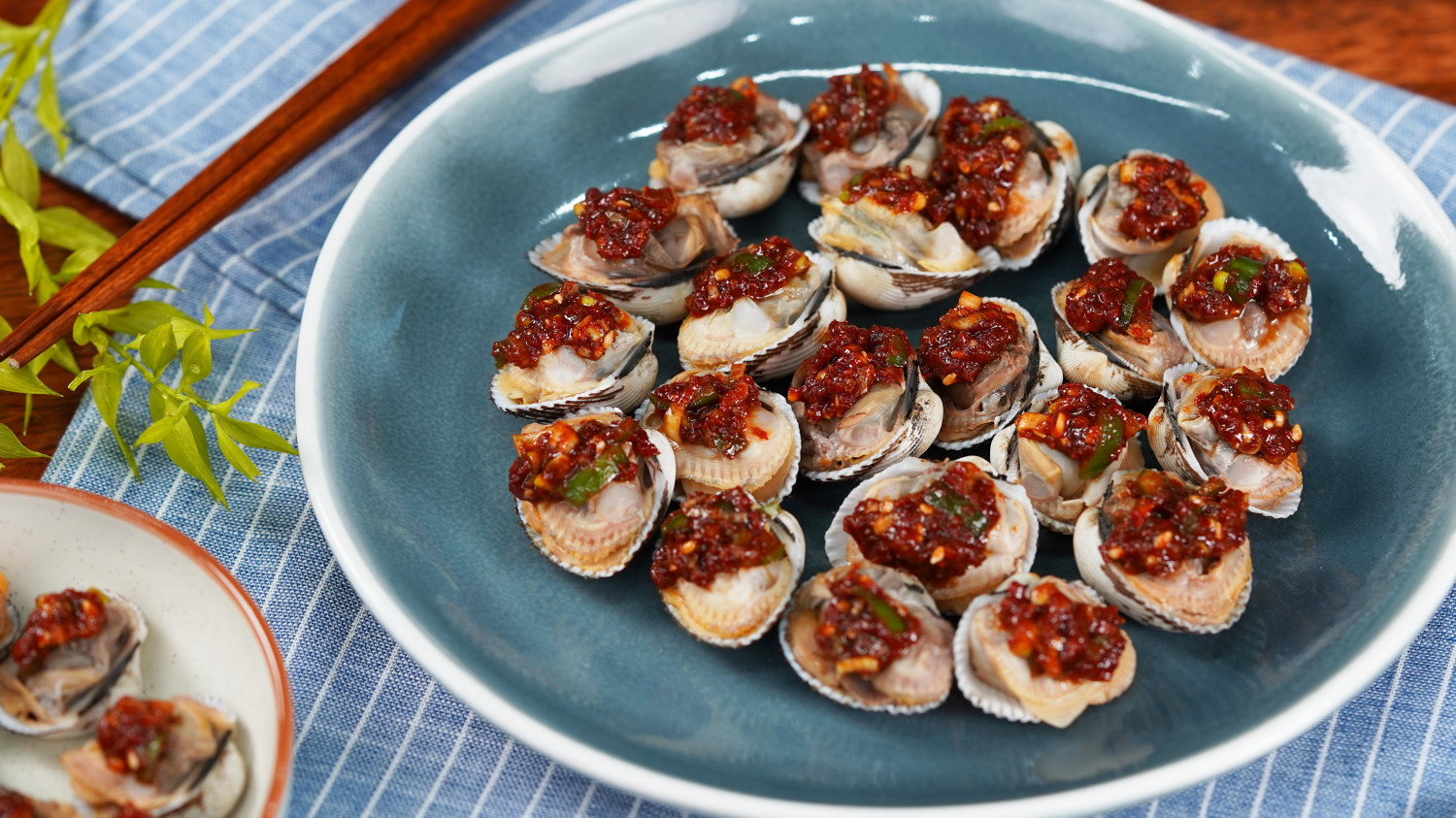 Untuk kerang yang matang sempurna, gunakan sendok atau pembuka cangkang kerang untuk membuka sedikit salah satu sisi setiap cangkang, memperlihatkan dagingnya. Ini memungkinkan saus meresap ke dalam kerang, membuatnya semakin lezat.