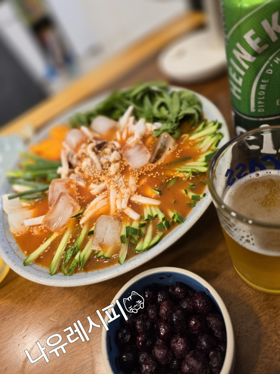 Puncak rasa manis dan asam! Tambahkan 7 sendok makan cho-gochujang secara rata. Cho-gochujang menyempurnakan rasa segar khas sup dingin.