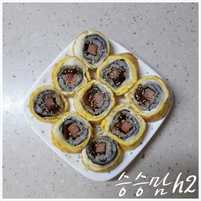 Kimbap Gulung Telur dengan Spam Pedas dan Keju Leleh