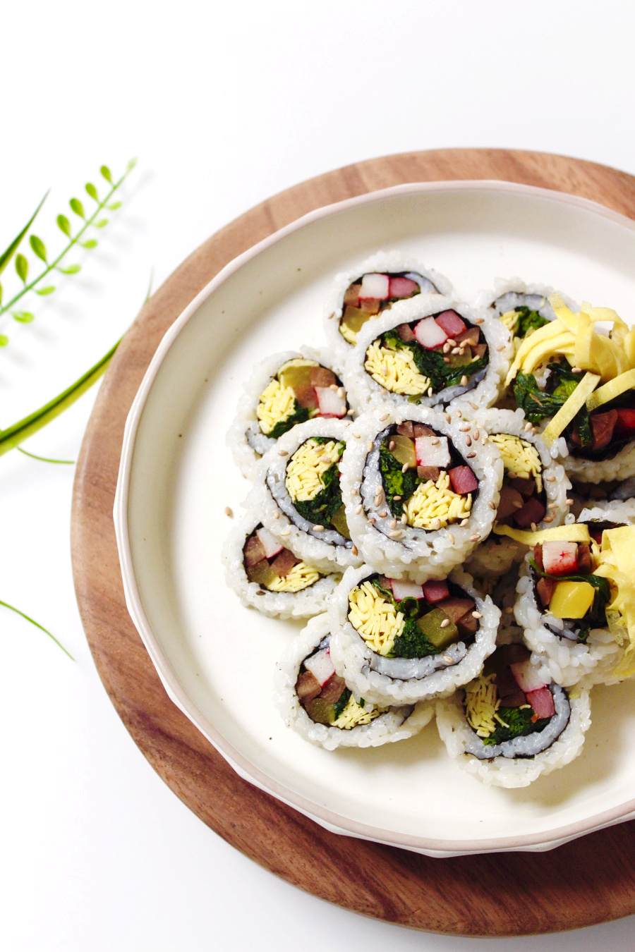 Potong kimbap gulung sesuai selera Anda. Kimbap “Nude” Anda yang lezat, dengan teksturnya yang lembab dan isian yang beraneka ragam, kini siap dinikmati!