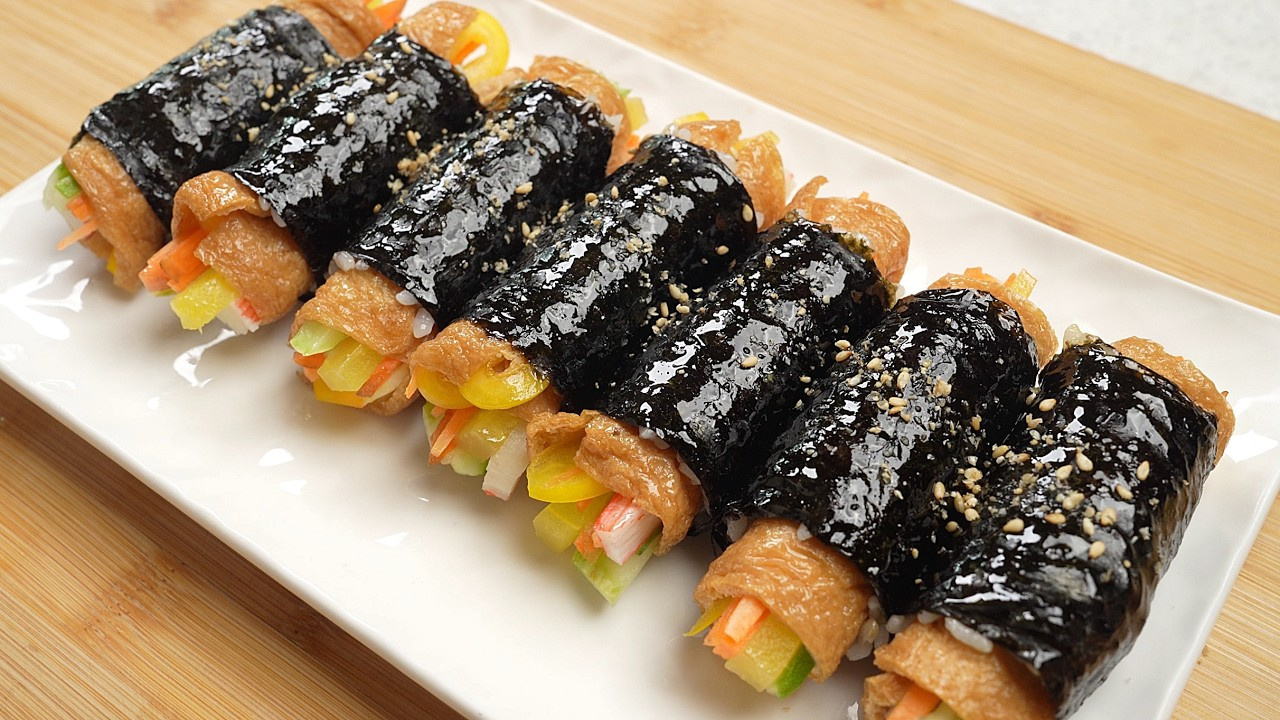 Kimbap Tahu Lipat Kaya Sayuran: Tekstur Renyah dan Tahu Lembut yang Sangat Lezat!