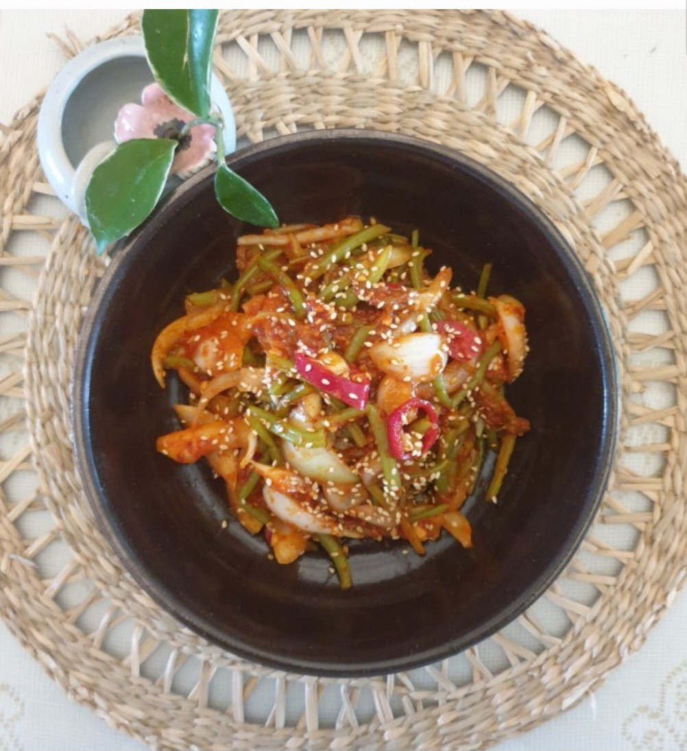 Nikmati kimchi batang ubi jalar yang renyah dan beraroma lezat ini, yang dibuat dengan hati-hati, bersama semangkuk nasi hangat. Anda akan merasakan rasa yang akan mengembalikan selera makan musim panas Anda. Jadikan meja makan Anda sehat dan menyenangkan dengan hidangan spesial musim panas ini!