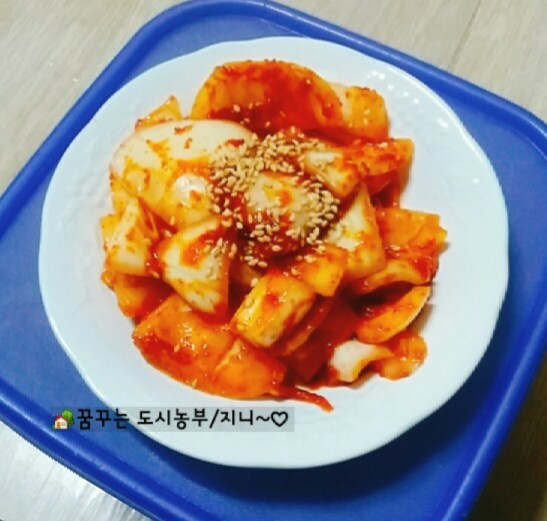 Sebelum memindahkan kimchi bawang yang sudah tercampur ke dalam wadah, Anda bisa mencicipinya. Jika rasanya kurang bumbu, Anda bisa menambahkan sedikit saus ikan teri atau garam lagi. (Langkah ini opsional)