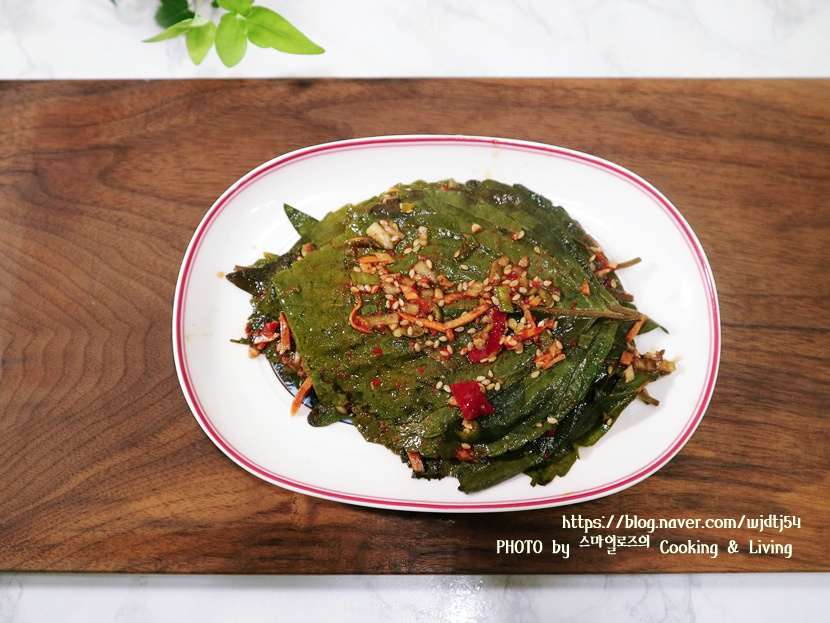 Setelah dua hari, berikut adalah kimchi daun perilla yang dikeluarkan dari kulkas. Bumbunya telah meresap indah ke dalam daun, membuatnya terlihat menggugah selera. Kombinasi aroma perilla yang harum dan bumbu pedas-manis sudah membuat air liur menetes.