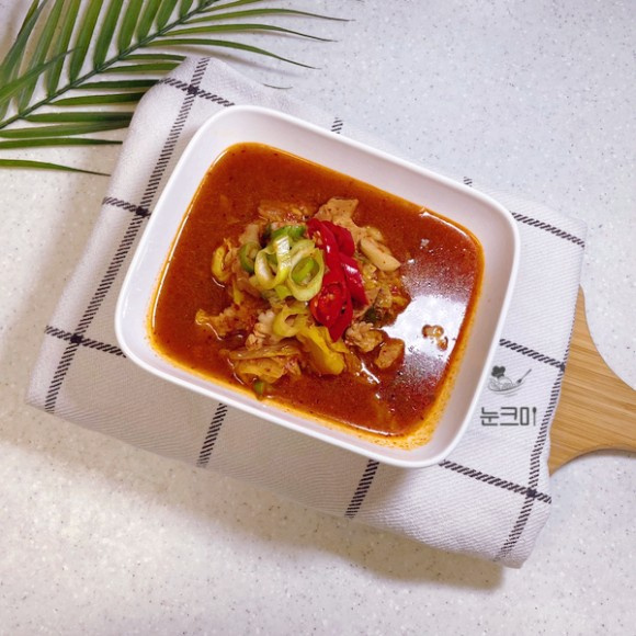 Dengan memasak menggunakan kuah air cucian beras yang kental tanpa perlu menumis daging babi terlebih dahulu, Anda bisa menikmati kimchi jjigae yang bersih dan pedas tanpa bau amis daging, benar-benar menangkap esensi aslinya! Sangat mudah, jadi cobalah dan nikmati hidangan lezat!
