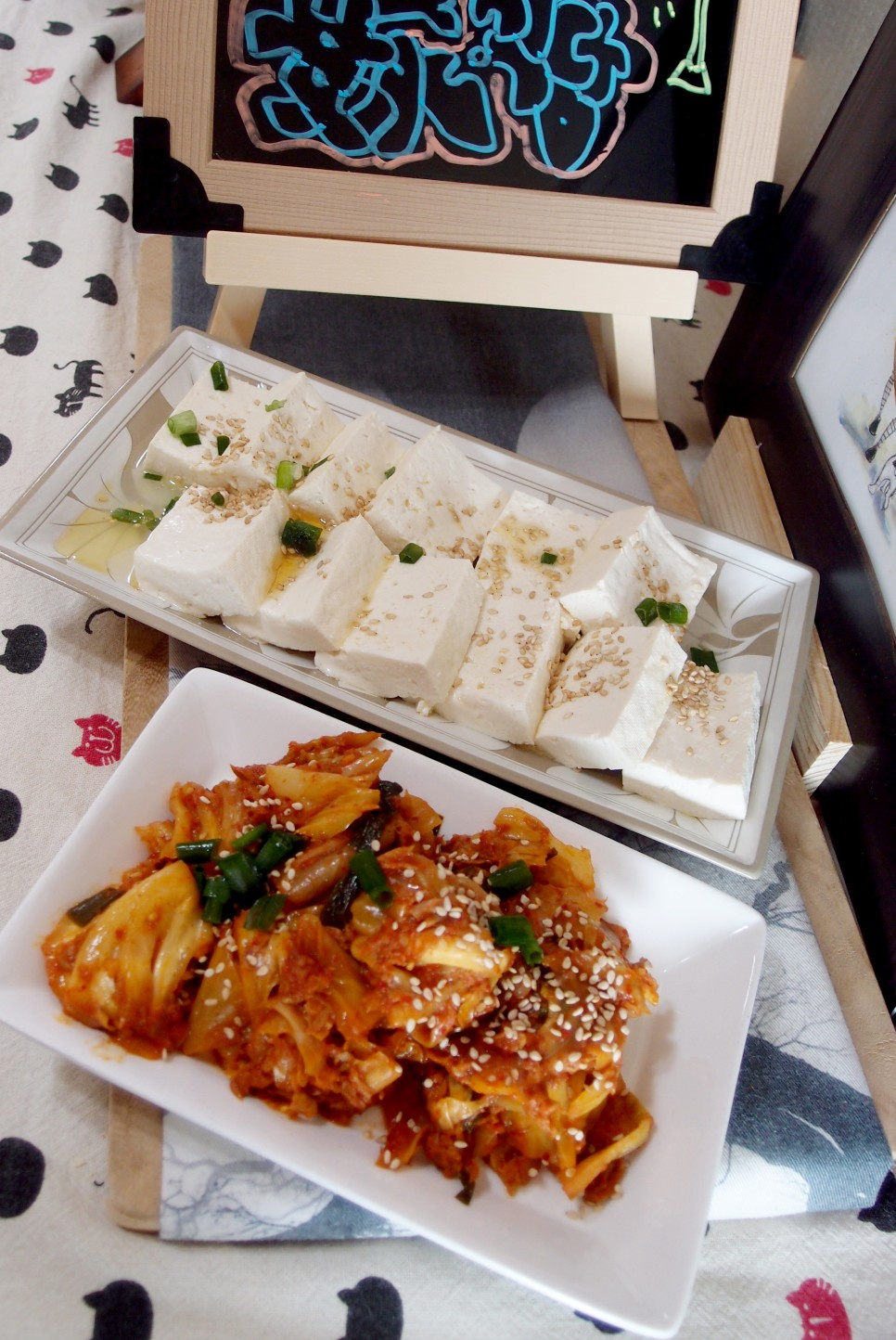 Potong tahu sesuai ukuran sajian yang diinginkan. Rebus sebentar dalam air mendidih atau masukkan ke dalam microwave selama sekitar 3 menit hingga hangat. Taburkan sedikit minyak perilla di atas tahu hangat dan taburi dengan biji wijen sangrai untuk menambah cita rasa. Sajikan tumisan kimchi kol dengan tuna ini bersama tahu hangat. Nikmati hidangan lezat ini, yang juga menjadi pendamping fantastis untuk segelas makgeolli!