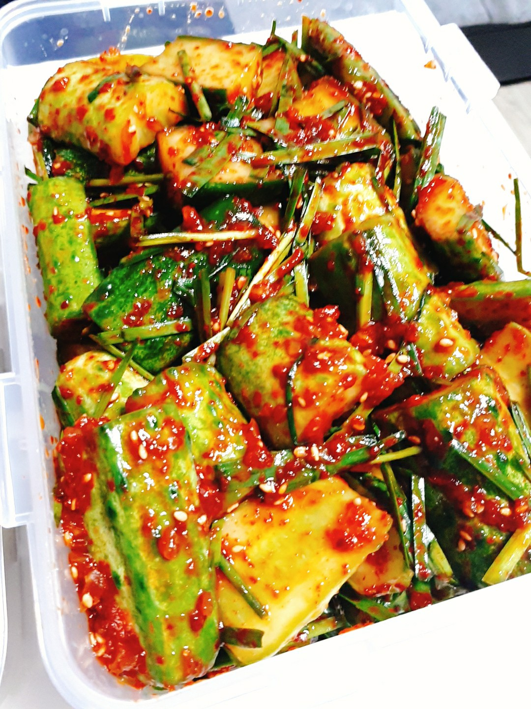 Sekarang musim timun putih renyah (baek-oi) telah tiba dan harganya turun, Anda bisa membuat kimchi timun yang menyegarkan sebagai pengganti kimchi tua Anda. Resep ini memungkinkan Anda membuat kimchi lezat tanpa repot membuat pasta tepung. Ini adalah hidangan pendamping yang sempurna untuk membangkitkan selera makan Anda, terutama di musim panas!