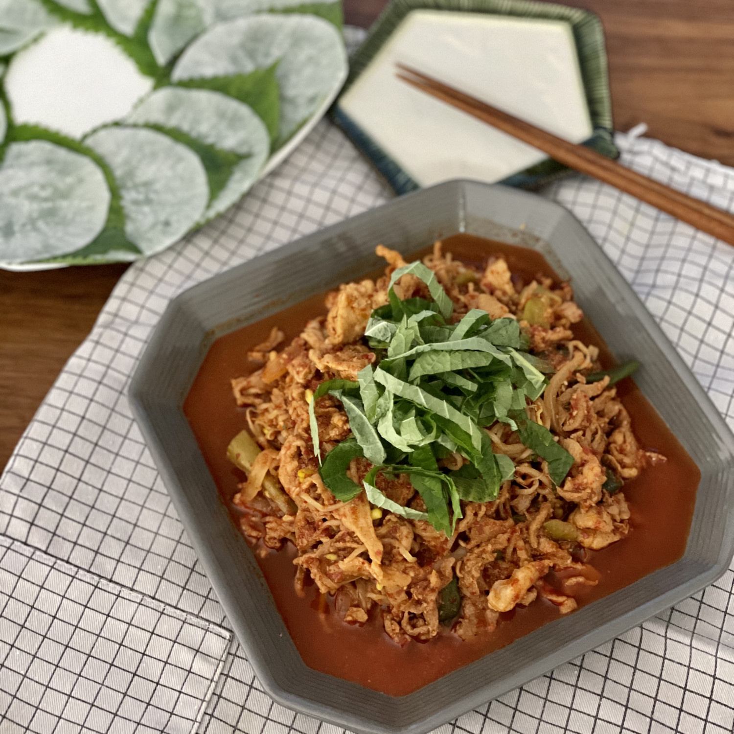 - 5 lembar Daun Perilla (iris tipis memanjang)