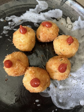 Bagi adonan kentang menjadi porsi seukuran sekali gigit (diameter sekitar 3-4 cm) dan bentuk menjadi bola-bola yang rapi. Anda bisa membentuknya sesuai selera, baik untuk camilan anak-anak maupun hidangan pembuka untuk orang dewasa.