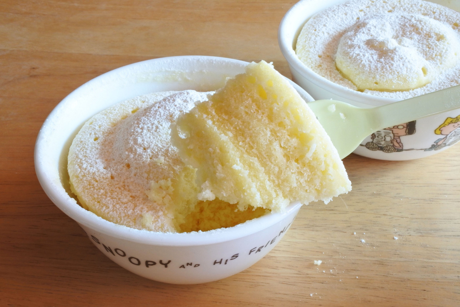 Siapkan wadah tahan microwave Anda. Mangkuk atau ramekin apa pun yang kokoh dan aman untuk microwave bisa digunakan. Untuk resep ini, kita akan menggunakan dua mangkuk nasi standar. Pastikan ukurannya sesuai untuk adonan.