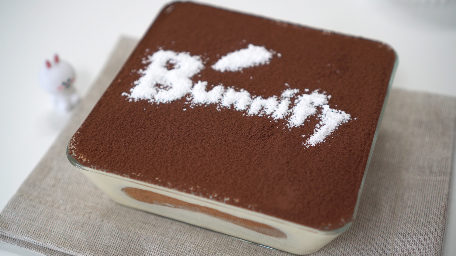 Tutup loyang rapat-rapat dengan plastic wrap dan dinginkan di lemari es selama minimal 4 jam, atau sebaiknya semalaman, agar tiramisu mengeras dan rasanya menyatu dengan indah.