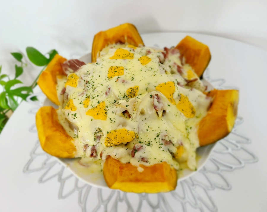 Hidangan Lezat dengan Bebek Asap, Kabocha, dan Keju Melimpah, Cocok untuk Pesta