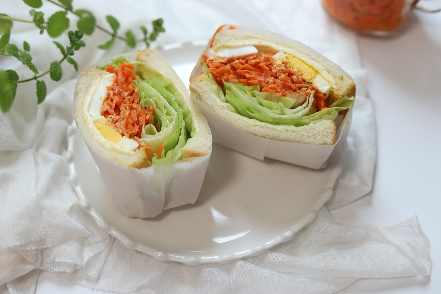 Potong sandwich menjadi beberapa bagian agar mudah dimakan dan nikmati. Anda mungkin awalnya berpikir, ‘Sandwich terbuat dari wortel?’ tetapi setelah mencicipinya, Anda akan terpesona oleh rasanya yang luar biasa segar dan cerah. Bahkan teman-teman saya yang biasanya tidak suka wortel melahap sandwich ini utuh.