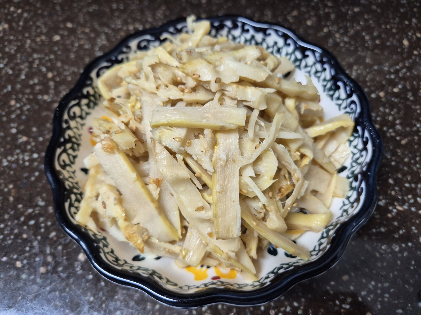 Terakhir, remas sedikit wijen sangrai di antara kedua telapak tangan sebelum ditambahkan ke dalam masakan. Ini akan meningkatkan aroma kacangnya dan rasa yang gurih, menciptakan urap rebung yang lezat!