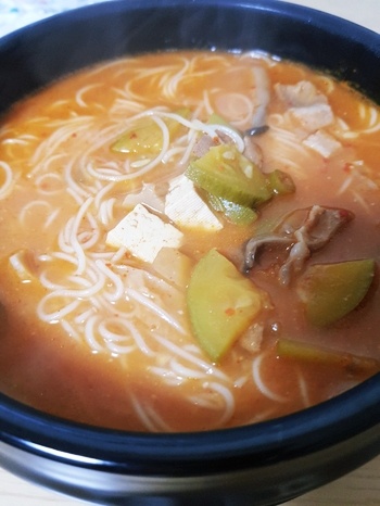 Ini dia cara fantastis untuk memanfaatkan doenjang jjigae sisa Anda ketika hanya tersisa sedikit! Dengan doenjang jjigae sisa dan mi somen, Anda bisa dengan mudah membuat hidangan mi yang memuaskan dan lezat. Ini adalah cara sederhana namun nikmat untuk menikmati rasa doenjang yang kaya.