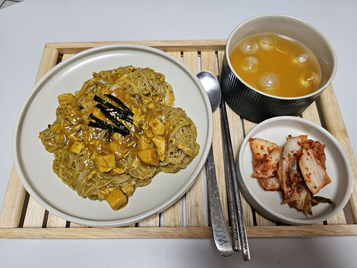 ♥ [Resep Dungji Naengmyeon] Resep Mie Pedas Kari Tuna Dungji
