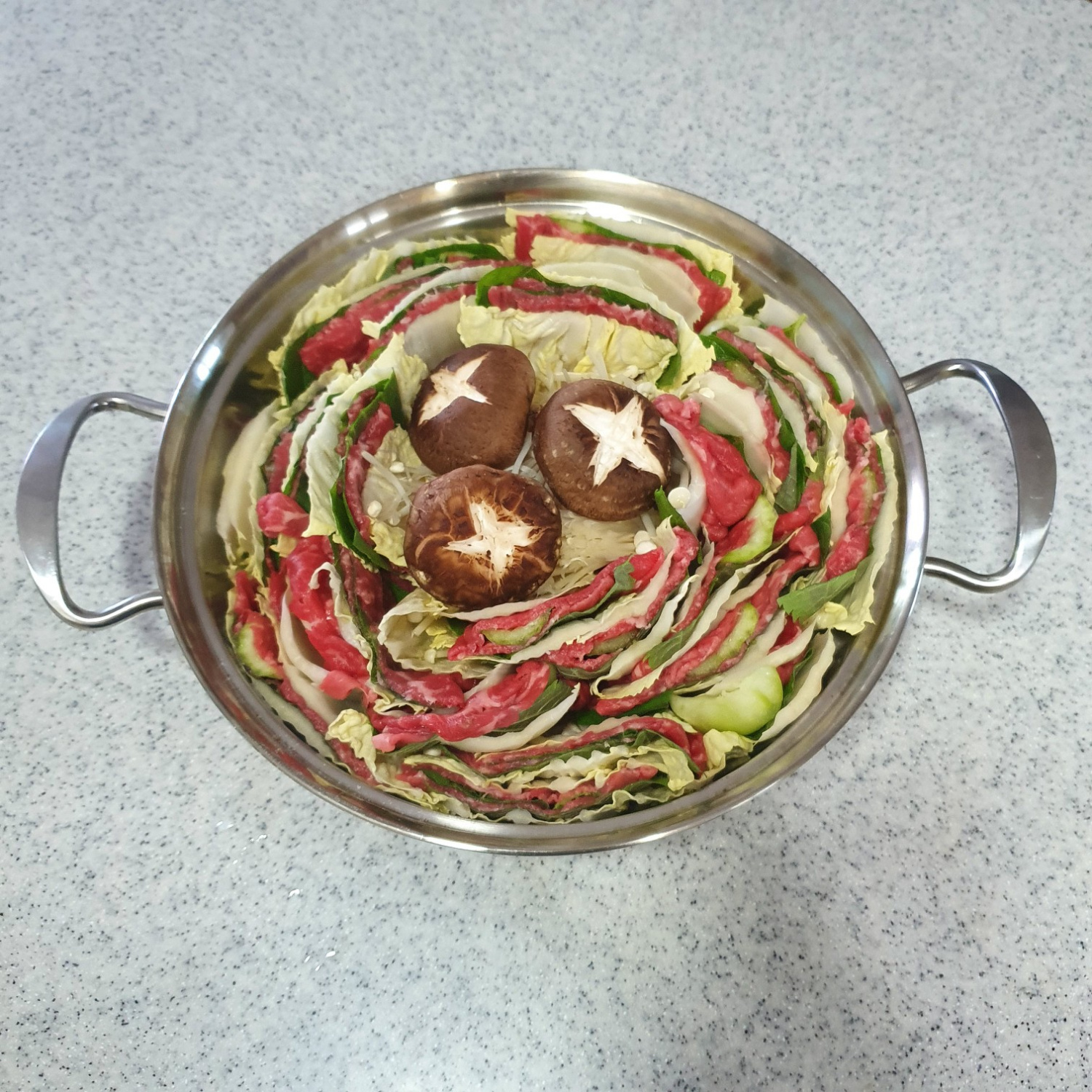 Setelah semua bahan disiapkan dan ditata rapi, Mille-feuille Nabe Anda siap dirangkai. Melihat bahan-bahan yang tertata indah memberikan gambaran awal betapa lezatnya hidangan yang akan dihasilkan.