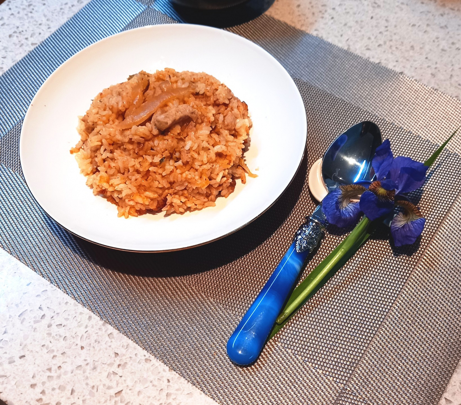 Nasi babi daging dan kimchi lezat Anda siap disajikan! Setelah matang, buka penanak nasi dan aduk perlahan semua bahan. Butiran nasi akan tetap pulen dan terpisah, sementara daging babi dan kimchi akan empuk serta kaya rasa. Sajikan nasi dalam mangkuk dan nikmati! (Tips: Untuk menambah cita rasa ekstra, Anda bisa menambahkan sedikit air kimchi lagi saat penyajian.)
