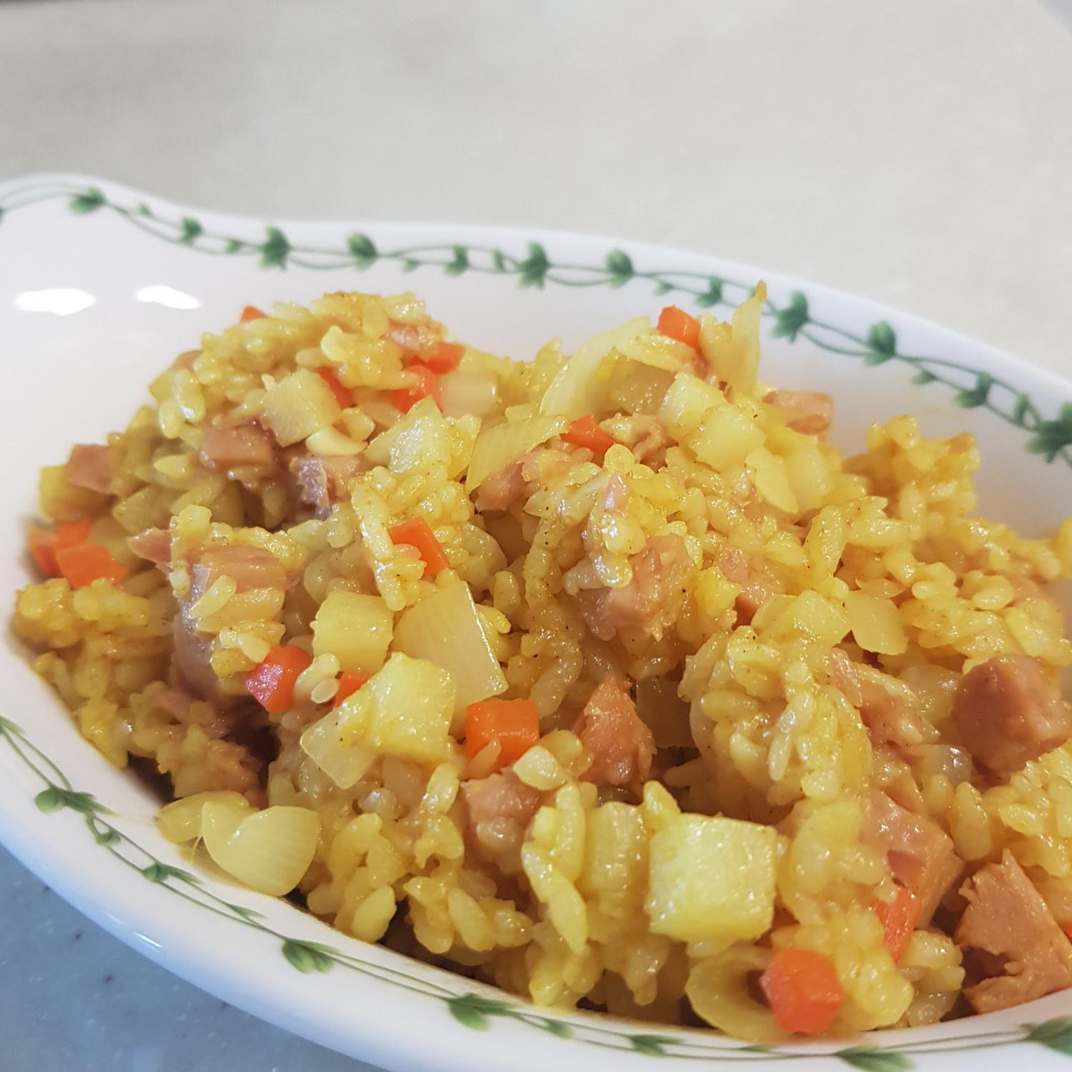 Mempersembahkan nasi goreng sayuran bergizi yang pasti akan memikat selera makan anak-anak yang pilih-pilih dengan aroma kari yang lezat! Dibuat dengan bahan-bahan sederhana, sangat cocok untuk hidangan yang menyenangkan. Hidangan ini bagus sebagai camilan untuk anak-anak atau sebagai pilihan makan malam yang simpel. Perpaduan harmonis antara rasa kari yang halus, sayuran renyah, dan Spam yang gurih sungguh lezat.
