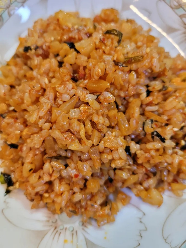 • Kkakdugi kimchi matang: 2/3 cangkir (sedikit lebih sedikit dari jumlah nasi; sesuaikan jika terlalu asin)