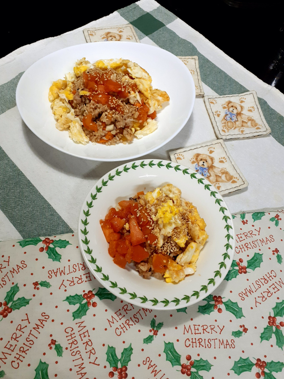 Sempurnakan santapan Anda dengan nasi goreng sederhana namun memuaskan ini, cocok untuk memanfaatkan sisa sayuran. Perpaduan warna yang indah, dikombinasikan dengan rasa manis dan asam dari tomat, menjadikannya favorit baik anak-anak maupun orang dewasa. Ini adalah hidangan bernutrisi dan mengenyangkan yang sangat mudah disiapkan.