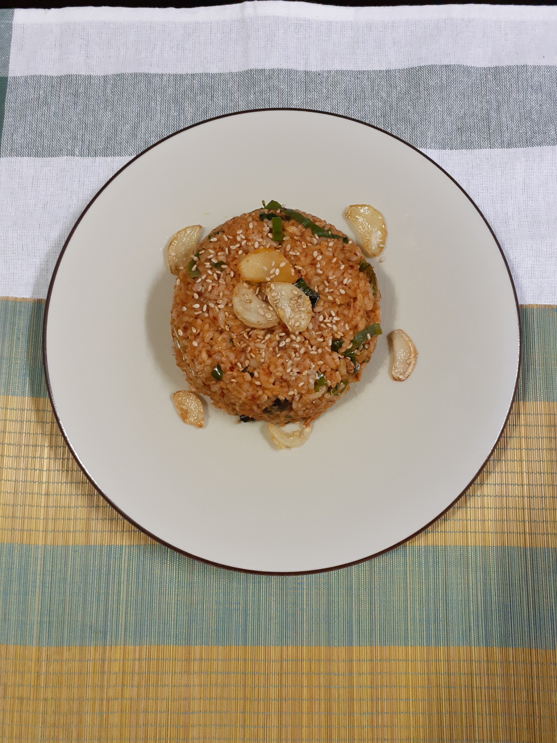 Nasi goreng ini menawarkan tekstur kenyal yang luar biasa dengan setiap butir nasi yang matang sempurna, memberikan rasa pedas namun gurih. Dengan tambahan bawang putih dan tuna, ini adalah kemenangan ganda baik untuk kesehatan maupun selera Anda. Ini adalah hidangan lengkap yang memuaskan dan sangat mudah dibuat.