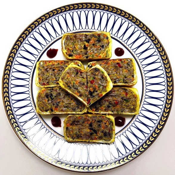 Omelet nasi gulung Anda yang lezat, diperkaya dengan sedikit rasa pedas dari cabai hijau Korea dan kerenyahan sayuran, kini siap dinikmati! Nikmati tekstur butiran nasi yang meletup-letup.
