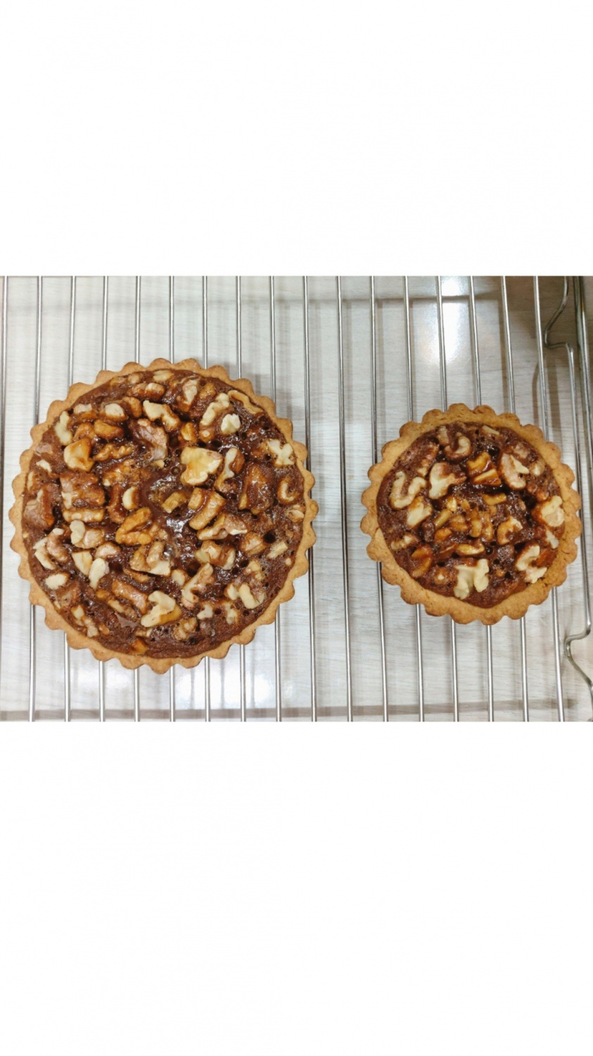 Jika Anda membuat pai kacang kenari mini dalam cetakan muffin: potong adonan kulit pai menjadi lingkaran yang sedikit lebih besar dari cetakan muffin, tekan ke dalam cetakan, tusuk bagian dasarnya dengan garpu, isi dengan kacang kenari panggang, lalu tuangkan isiannya. (Panggang dalam oven yang sudah dipanaskan pada suhu 170°C selama sekitar 30-35 menit). Anda telah bekerja keras! Nikmati pai kacang kenari buatan sendiri yang lezat!