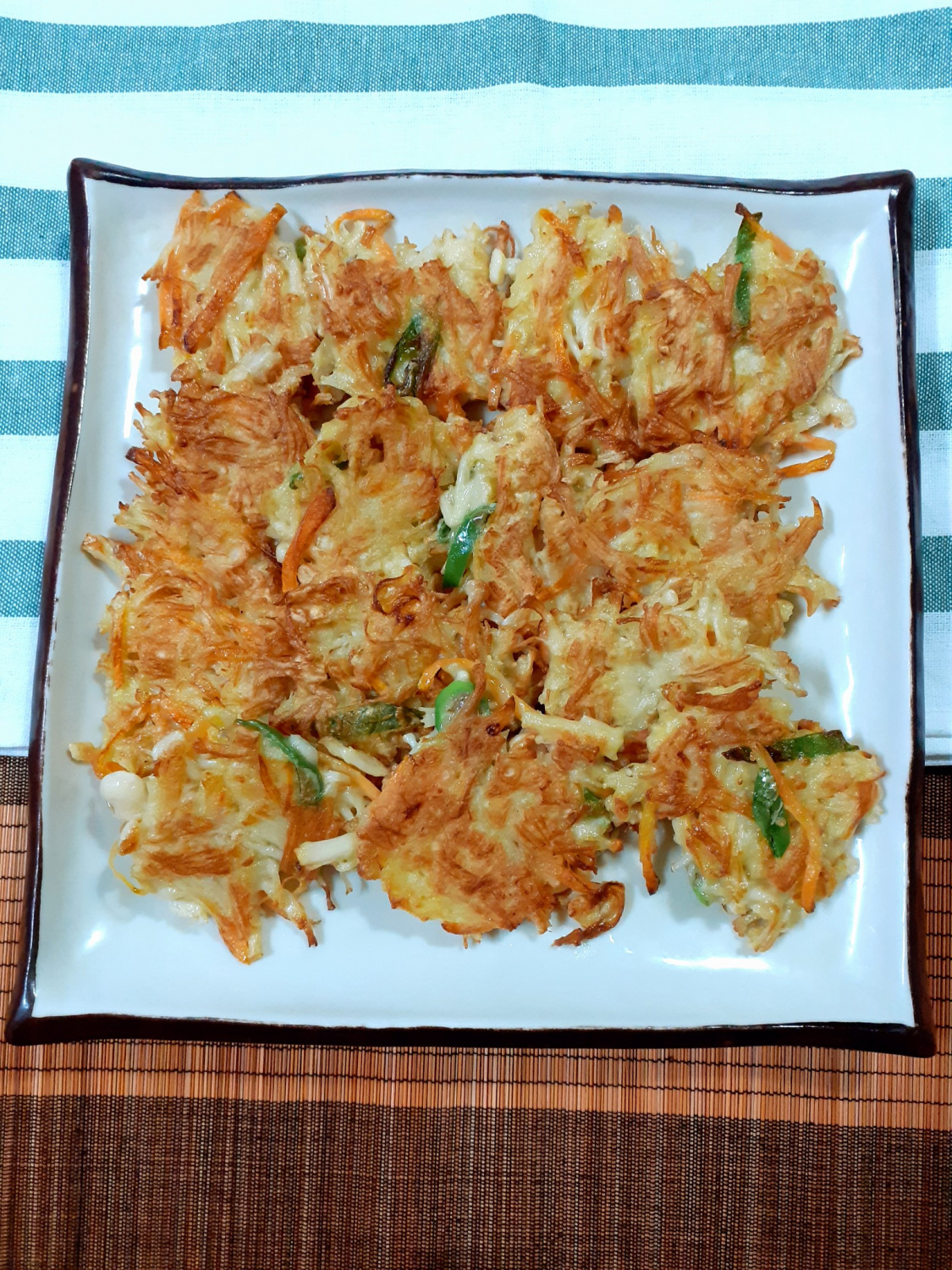 Saya membuat pancake gurih ini saat merasa sedikit lapar sebelum makan. Saya menambahkan sedikit kecap ikan, dan rasanya luar biasa lezat, hampir seperti ada seafood di dalamnya! Teksturnya yang kenyal dan rasanya yang kaya sungguh nikmat.