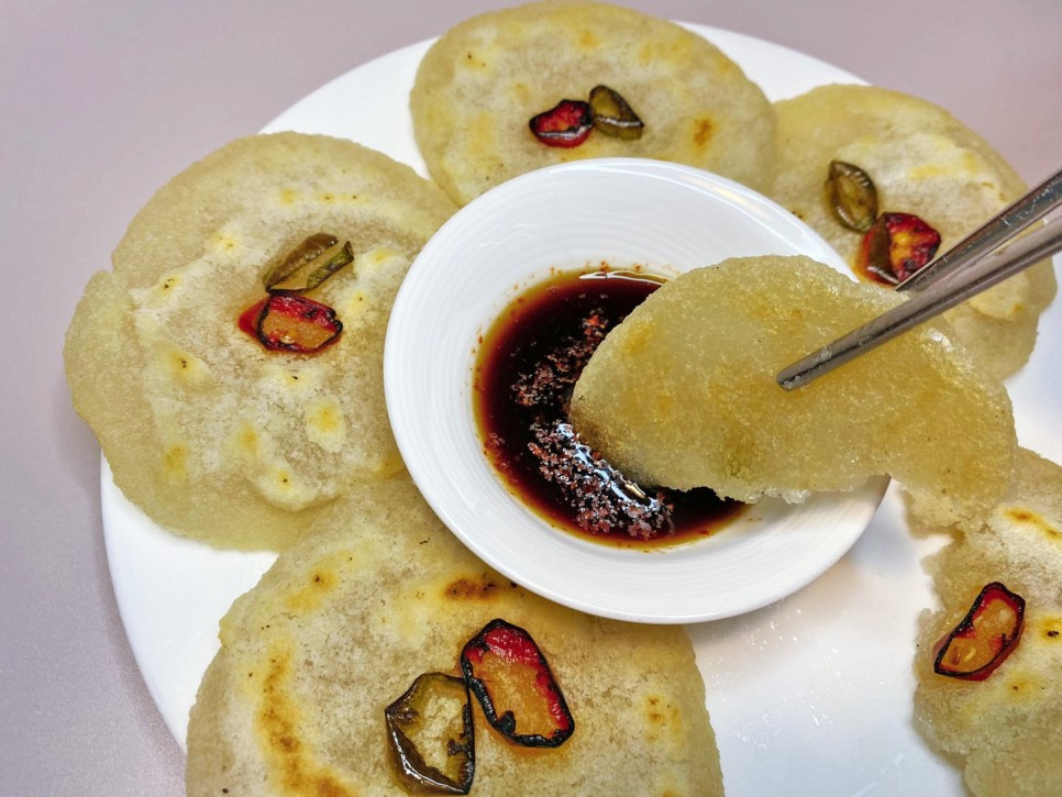 Panaskan wajan dengan minyak yang cukup di atas api sedang. Tuang adonan kentang secukupnya ke dalam wajan panas, bentuk menjadi pancake datar dan bulat. Letakkan sepotong cabai merah dan cabai Cheongyang di atas setiap pancake sebagai hiasan.