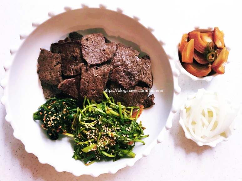 Terakhir, tambahkan sepotong bawang bombai acar yang tajam dan sedikit cabai Cheongyang pedas untuk ledakan rasa di setiap gigitan! Rasakan simfoni rasa. Nikmati daging sapi bagian feses panggang buatan sendiri yang lezat, sama seperti di restoran kelas atas. Selamat menikmati!^^