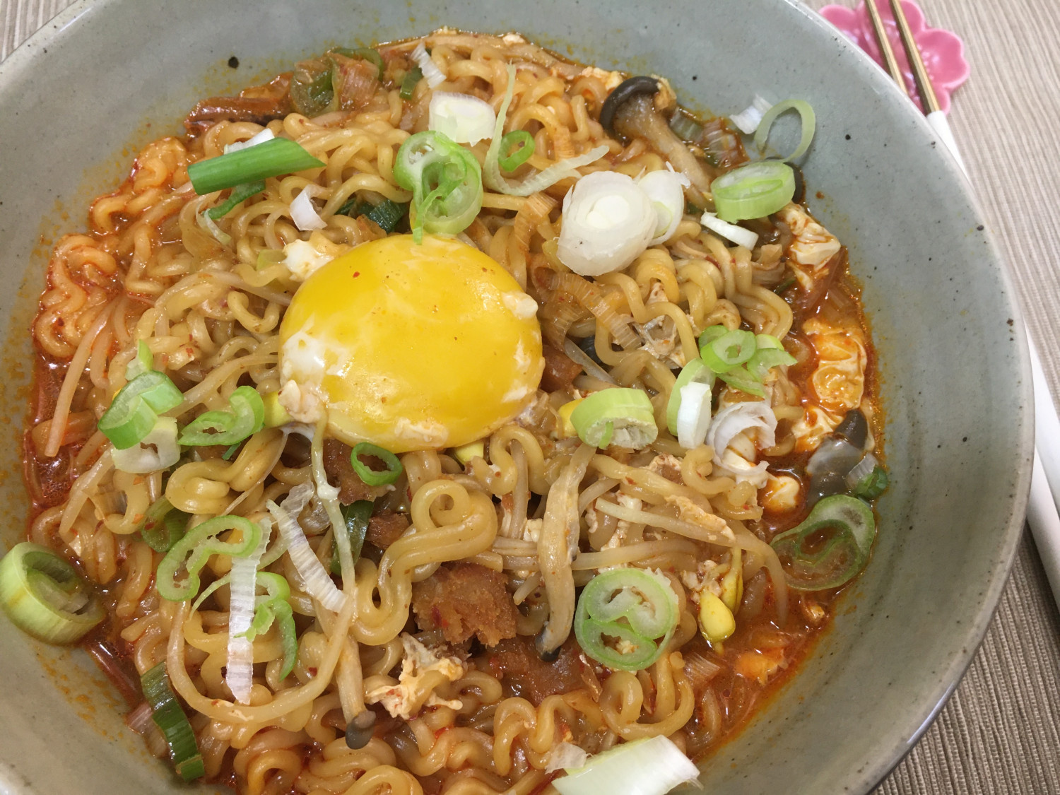 Karena cuaca mulai sejuk di pagi dan malam hari, saya membuat ramen pedas yang menghangatkan badan dengan jamur tauge dan ikan pollack kering.