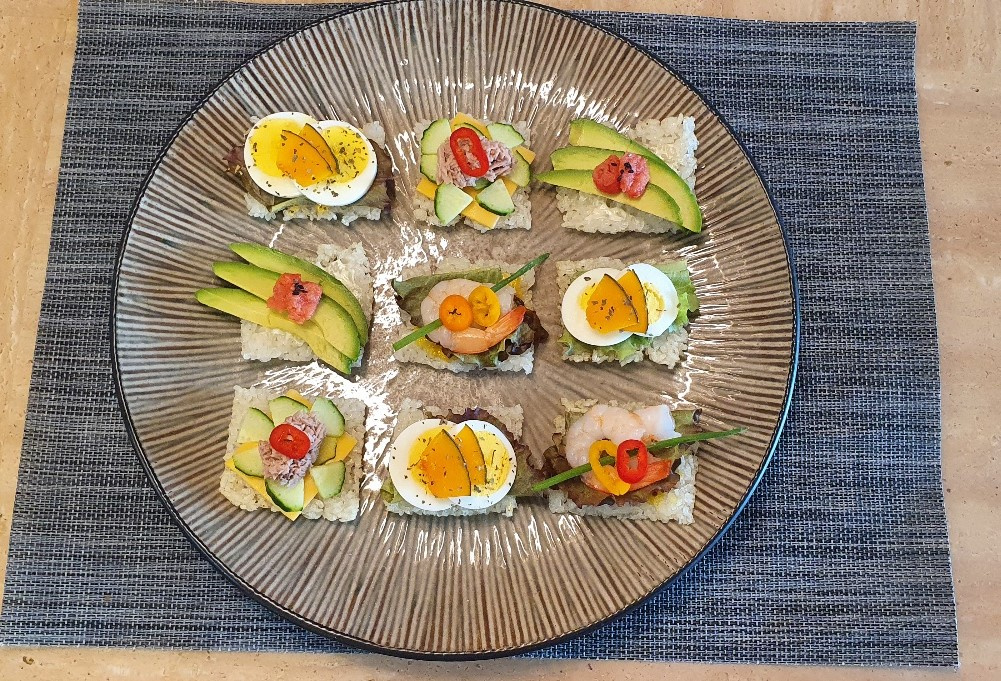 Canape Kerupuk Nasi ini, yang dapat dengan mudah diadaptasi dengan bahan-bahan yang Anda miliki di rumah, sangat disukai oleh segala usia. Cukup mengenyangkan untuk dijadikan makanan utama dan cukup elegan untuk hidangan pesta, menjadikannya tambahan yang sehat yang membawa keceriaan di meja makan mana pun.