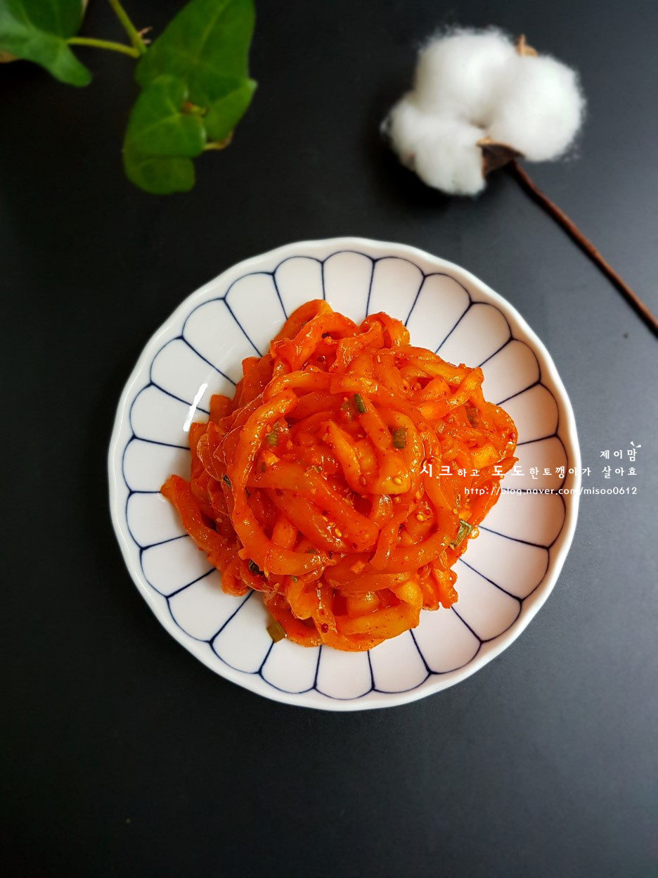 Nokak Muchim Anda yang renyah dan lezat siap disajikan! Ini adalah hidangan pendamping yang sangat cocok dengan nasi.