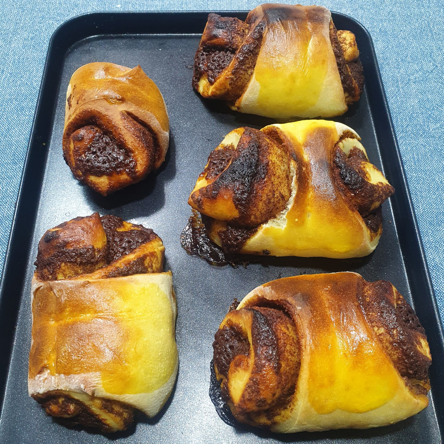 Cinnamon roll ini menampilkan perpaduan menarik antara gula manis dan kayu manis yang sedikit pahit, menjadikannya teman sempurna untuk secangkir kopi atau teh. Sangat ideal untuk menikmati waktu minum teh sore yang santai. Rasakan kebahagiaan roti yang baru dipanggang dan aroma kayu manis yang kaya memenuhi indra Anda : D