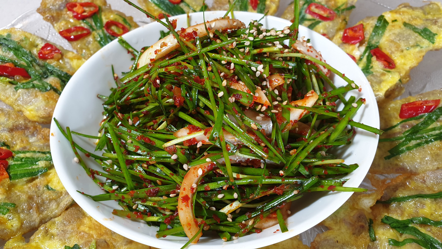 Yang baru saja dibuat saja rasanya lebih enak dari kimchi, sampai-sampai anak-anak pun suka banget! Kami perkenalkan resep kimchi daun kucai (buchu geotjeori) yang bikin ketagihan. Hidangan ini terbuat dari daun kucai yang kaya nutrisi, jadi selain enak juga sehat. Sangat cocok dijadikan lauk pendamping atau disantap bersama daging panggang untuk menyeimbangkan rasa gurihnya. (Video resep dimulai dari menit ke-2)