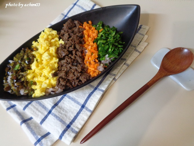 Siapkan daging sapi untuk bulgogi. Tepuk-tepuk dengan tisu dapur untuk menghilangkan kelebihan darah. Kemudian, campurkan dengan kecap asin, bawang putih cincang, minyak wijen, angciu, sake, dan sirup jahe. Remas-remas daging agar bumbu meresap. Bumbu marinasi ini akan membuat daging menjadi empuk dan beraroma.