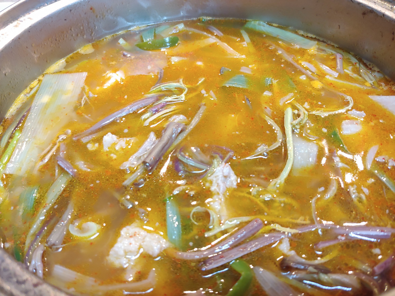 Sup pedas Korea (Yukgaejang) yang kaya rasa ini dibuat dengan kaldu kental dari daging sandung lamur, direbus perlahan dengan daun bawang musim dingin, pakis, dan lobak. Semangkuk sup panas ini menawarkan kehangatan yang mendalam yang menghilangkan rasa dingin musim dingin. Membuat sepanci besar memastikan makanan yang lezat dan memuaskan selama beberapa hari, menjadikannya hidangan istimewa yang sempurna untuk musim dingin.