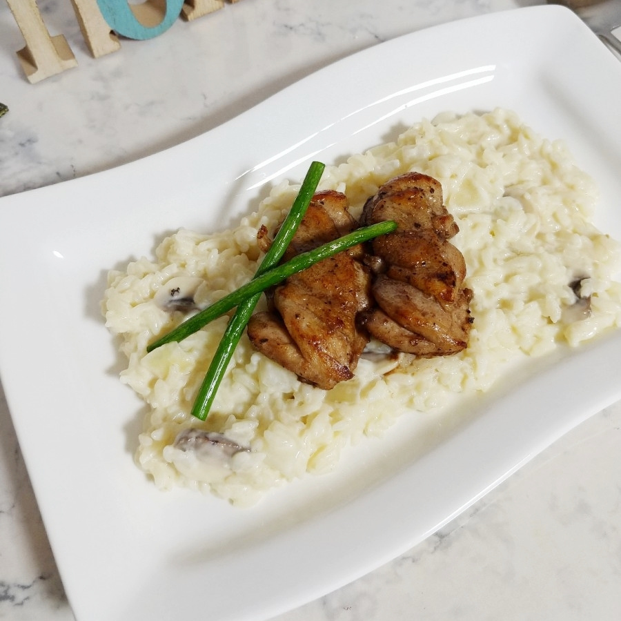 Sulap dapur Anda menjadi restoran mewah dengan Risotto Krimi yang lembut berpadu Ayam Panggang yang dimasak dalam saus anggur kaya rasa. Disajikan dengan indah dalam satu piring, hidangan ini adalah pilihan sempurna untuk perayaan atau momen istimewa. Kelezatannya juga sangat cocok dinikmati bersama anggur.
