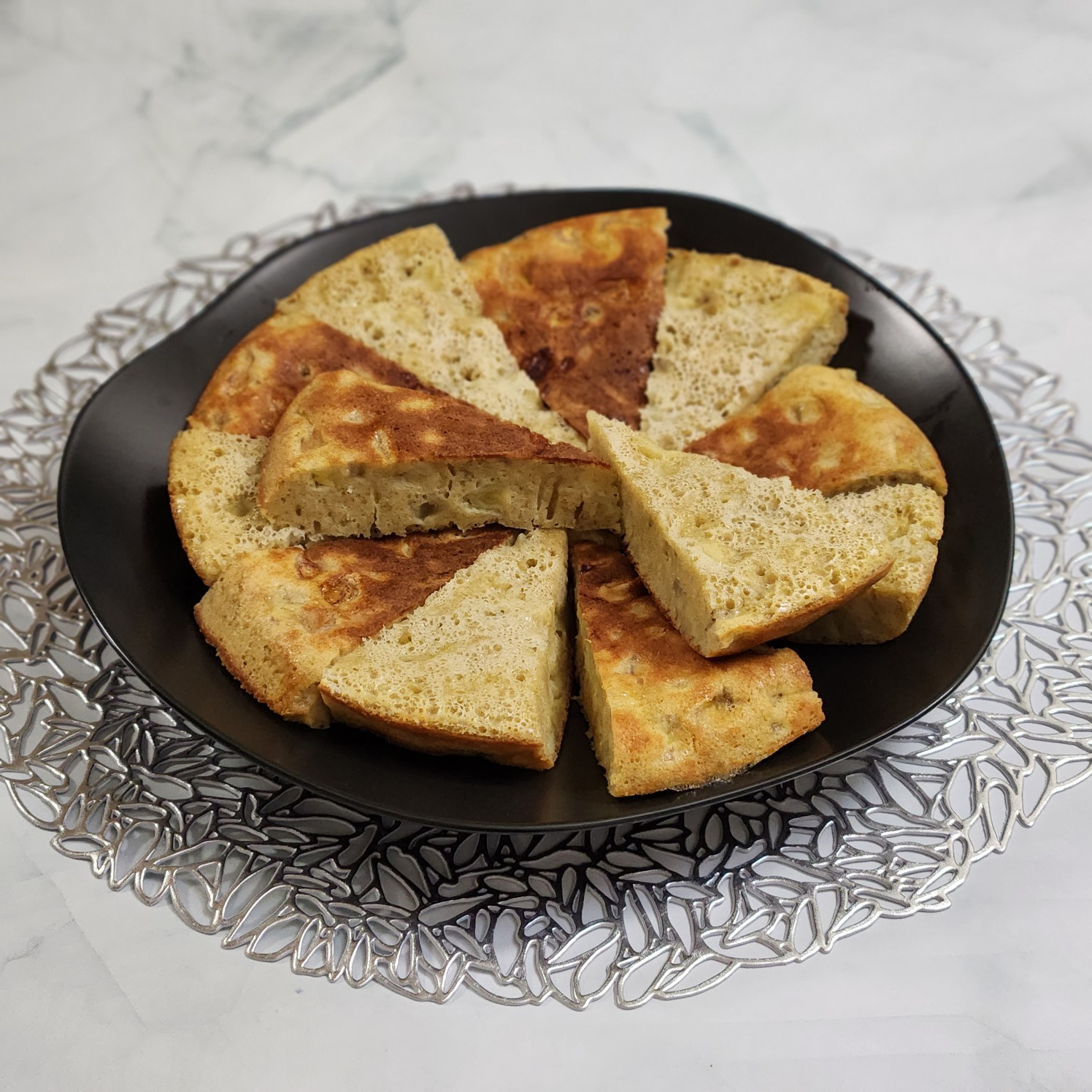 Keluarkan roti pisang yang sudah matang dari wajan dan biarkan sedikit mendingin. Setelah cukup hangat untuk dipegang, potong menjadi porsi sesuai keinginan Anda. Dengan banyak pisang yang ditambahkan, roti ini sangat lembut dan manis. Ini adalah camilan sehat yang luar biasa untuk anak-anak.