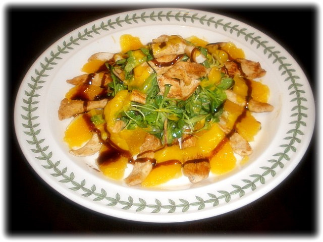 Tata sayuran salad yang sudah dibumbui di atas piring saji. Tata dengan artistik irisan (atau potongan) jeruk dan dada ayam matang yang sudah dipotong di sekitar sayuran. Sajikan campuran salad yang sudah diaduk di tengah. Terakhir, teteskan krim balsamic dalam pola zig-zag. Untuk sentuhan ekstra, pertimbangkan menambahkan kacang-kacangan atau keju.