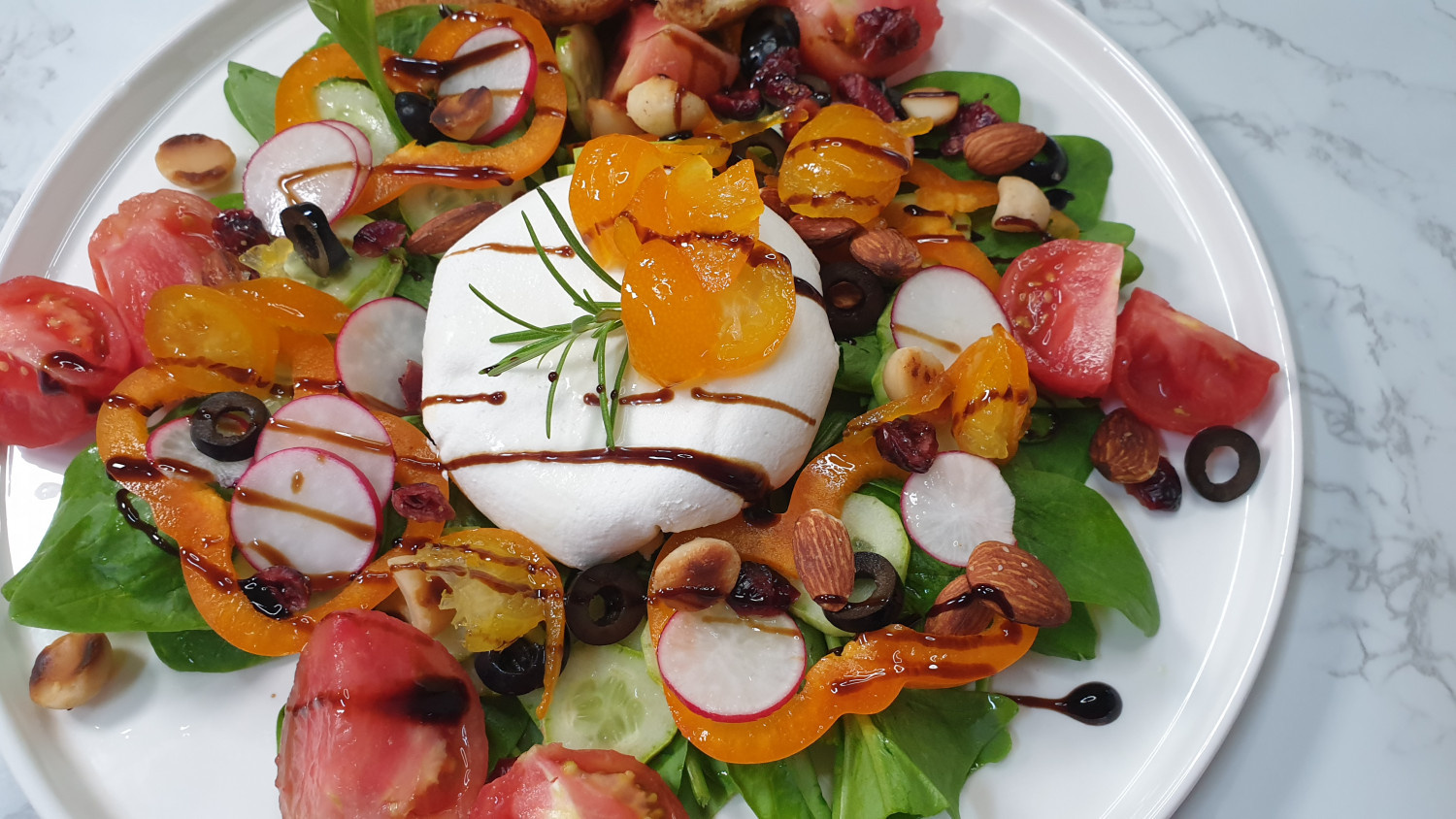 Jangan biarkan sisa krim Anda terbuang percuma! Hanya dengan susu, jus lemon, dan sejumput garam, Anda bisa membuat keju ricotta lezat di rumah, seperti di kafe. Dipadukan dengan sayuran segar, roti panggang renyah, dan saus balsamic yang manis asam, salad ini menjadi hidangan makan siang atau sarapan yang fantastis. Buatlah salad keju ricotta buatan sendiri yang segar dan lembut ini hari ini!
