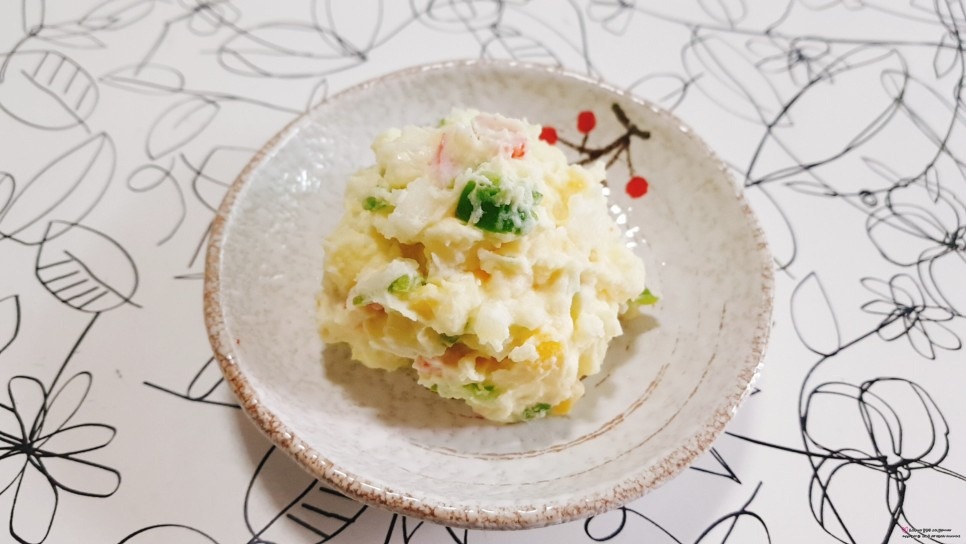 Aduk rata hingga mayones dan mustard tercampur merata ke dalam kentang tumbuk dan bahan lainnya. Aduk perlahan untuk memastikan konsistensi yang seragam tanpa gumpalan. Bumbui dengan 0.5 sdt garam. Cicipi dan tambahkan garam atau mayones lagi jika perlu.