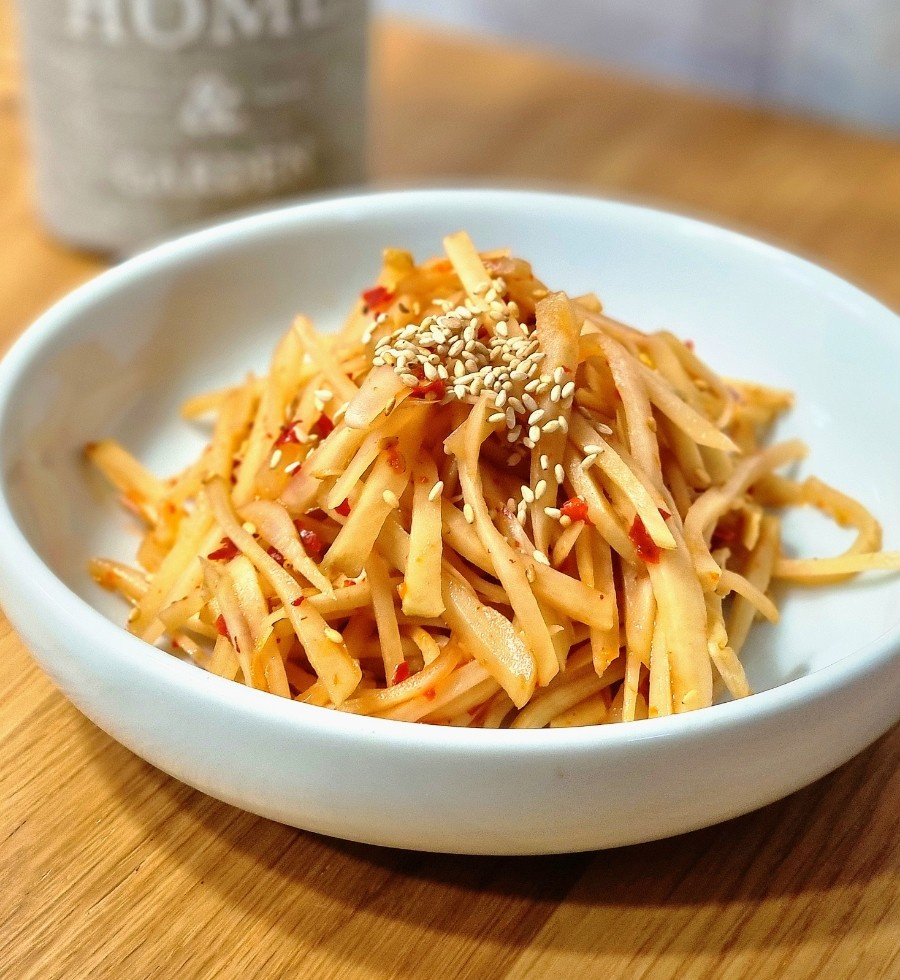 Menemukan kimchi Chon-gak tua yang terlupakan di bagian belakang kulkas? Jangan khawatir! Ubah menjadi salad lobak parut yang menyegarkan. Hidangan ini menawarkan tekstur renyah yang luar biasa dengan rasa pedas dan bersih yang membuatnya sangat adiktif. Ini adalah lauk pendamping yang fantastis yang pasti akan membuat Anda terus makan.