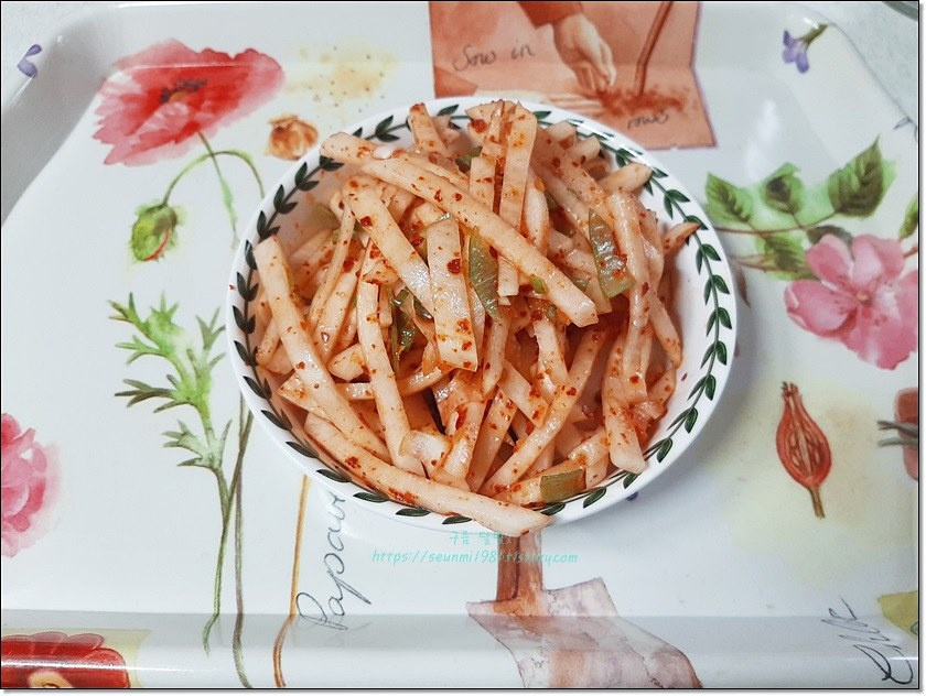 Di hari-hari musim panas yang terik, saat nafsu makan menurun, salad lobak renyah (Musaengchae) ini adalah solusi yang sempurna! Sangat mudah dibuat dan terasa fantastis saat dicampurkan ke dalam bibimbap. Anda hanya memerlukan satu lobak untuk membuat lauk yang lezat ini, membuatnya sangat nyaman. Jika Anda mendapatkan rasio bumbu yang tepat, Anda akan mencapai rasa yang menyaingi restoran profesional. Kesegaran lobak segar yang menyegarkan dikombinasikan dengan saus manis dan asam pasti akan membangkitkan selera makan Anda. Siap membuat Musaengchae yang lezat?