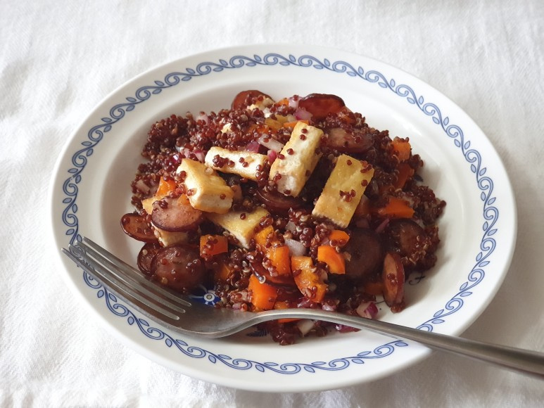 Salad Quinoa Merah dengan Tomat Kering Matahari dan Tahu