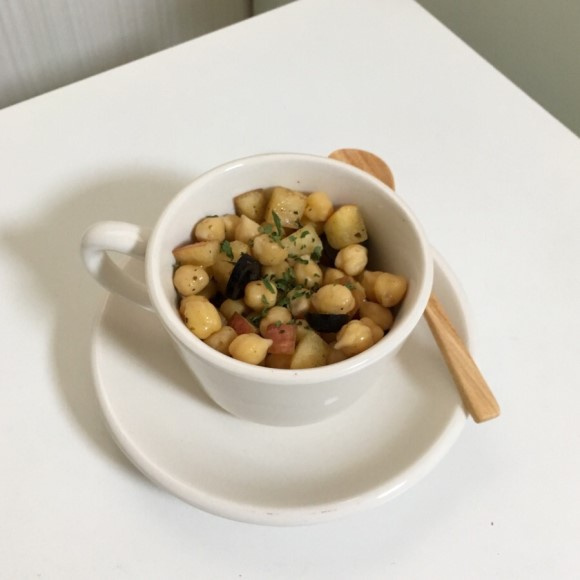Keesokan harinya, masukkan kacang arab yang sudah direndam sepenuhnya ke dalam panci, tutupi dengan air, dan rebus selama sekitar 20-30 menit hingga empuk. Tiriskan kacang arab yang sudah matang dan campurkan dalam mangkuk dengan apel dan zaitun yang sudah disiapkan.