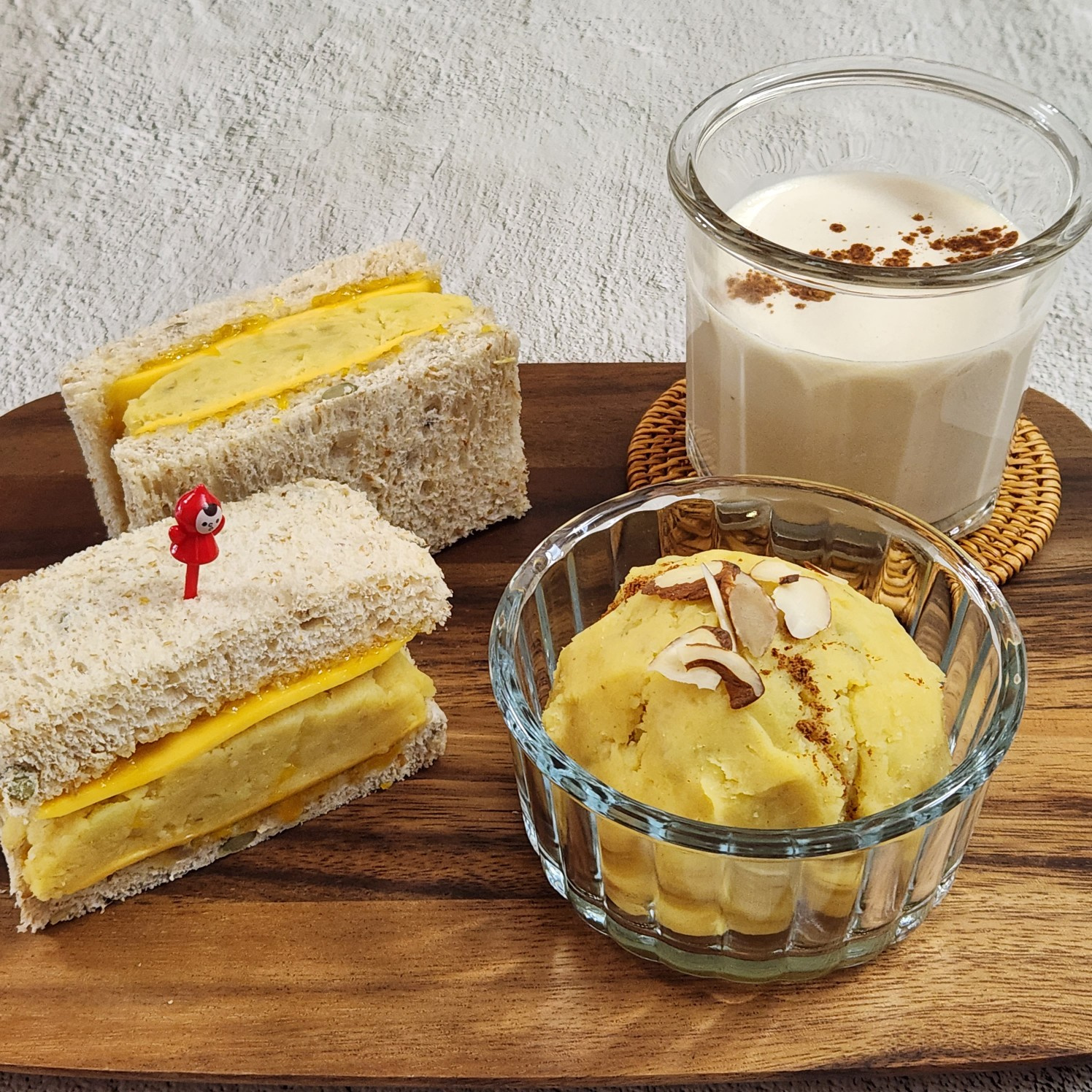 Ini adalah sandwich lezat yang menampilkan salad krimi yang terbuat dari ubi jalar yang empuk. Sangat cocok dinikmati bersama susu dan menjadikannya camilan yang sangat baik untuk anak-anak. Nikmati manisnya yang menenangkan dan teksturnya yang memuaskan.